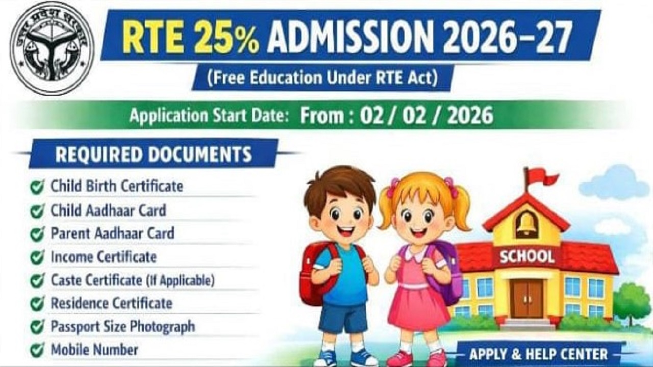 • Answer – The online application process for the UP RTE Admission Online Application Form will start on 02 February 2026.